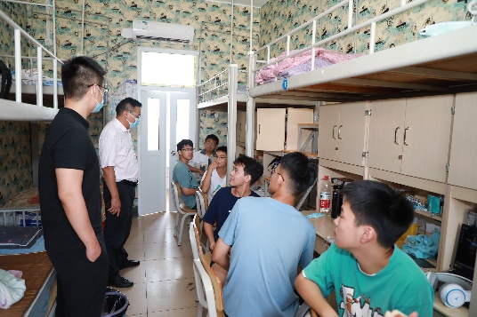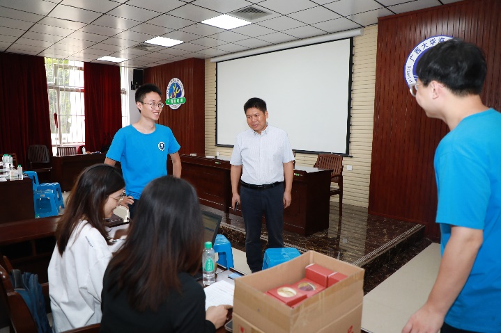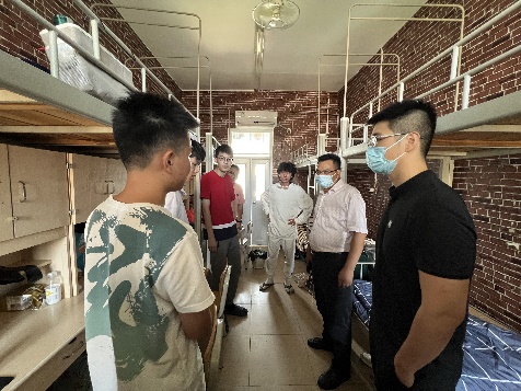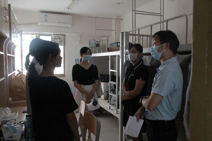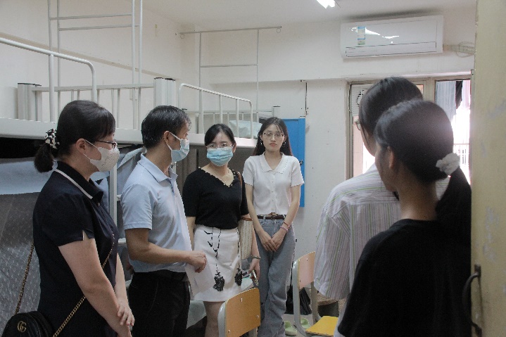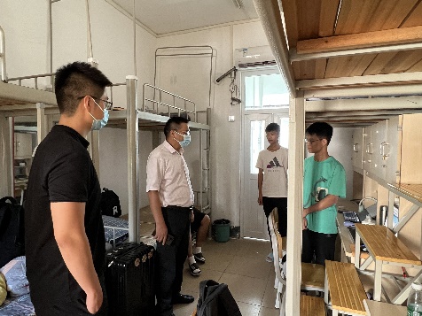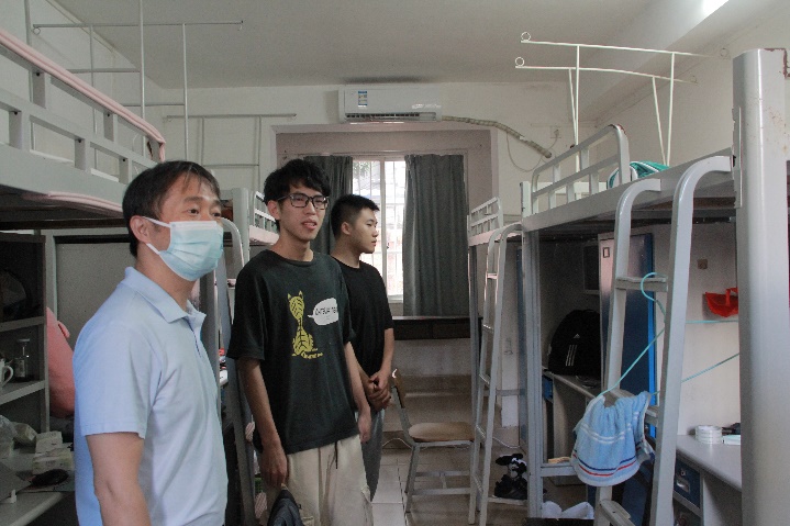9月9日下午,学院党委书记谭运阳,副书记朱迅成,班主任张媛媛、邓珊珊、陈飚,团委书记秦凤微、团委副书记周剑等老师与班助们走访新生宿舍,对新同学们的到来表示欢迎与祝贺,同时向同学们强调了校园安全问题,叮嘱他们调整心理状态、树立个人目标、远离各类网络游戏、实现主动学习,并耐心解答了他们的疑惑与问题。