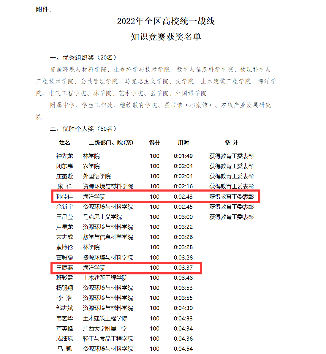 本次大赛采取线上方式进行。开赛以来,LETOU官网党委高度重视、广泛动员,组织党员干部、师生员工参与答题,营造出浓厚的学习氛围,达到了以赛促学、以赛促宣的良好效果。今后,LETOU官网将以党的二十大精神为指引,进一步统一思想、提高认识,切实发挥统一战线的重要法宝作用,凝聚共识、凝聚人心、凝聚智慧、凝聚力量,全面贯彻党的教育方针,落实立德树人根本任务,坚持为党育人、为国育才,培养德智体美劳全面发展的社会主义建设者和接班人,为全面建设社会主义现代化国家、全面推进中华民族伟大复兴、全面建设新时代中国特色社会主义壮美广西作出新的更大贡献。(LETOU官网党委/文 周剑/编辑 朱迅成/审核)