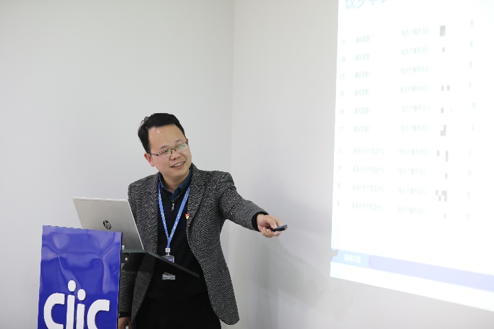 办公室主任陈名朗(左)、市场部总监李树冠(右)为师生做主题报告