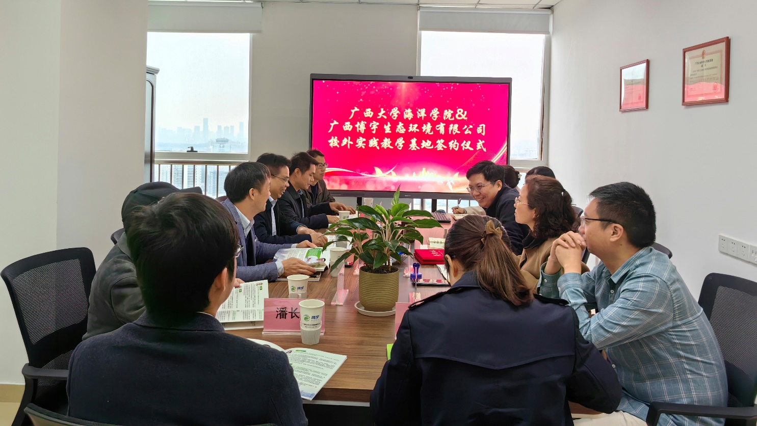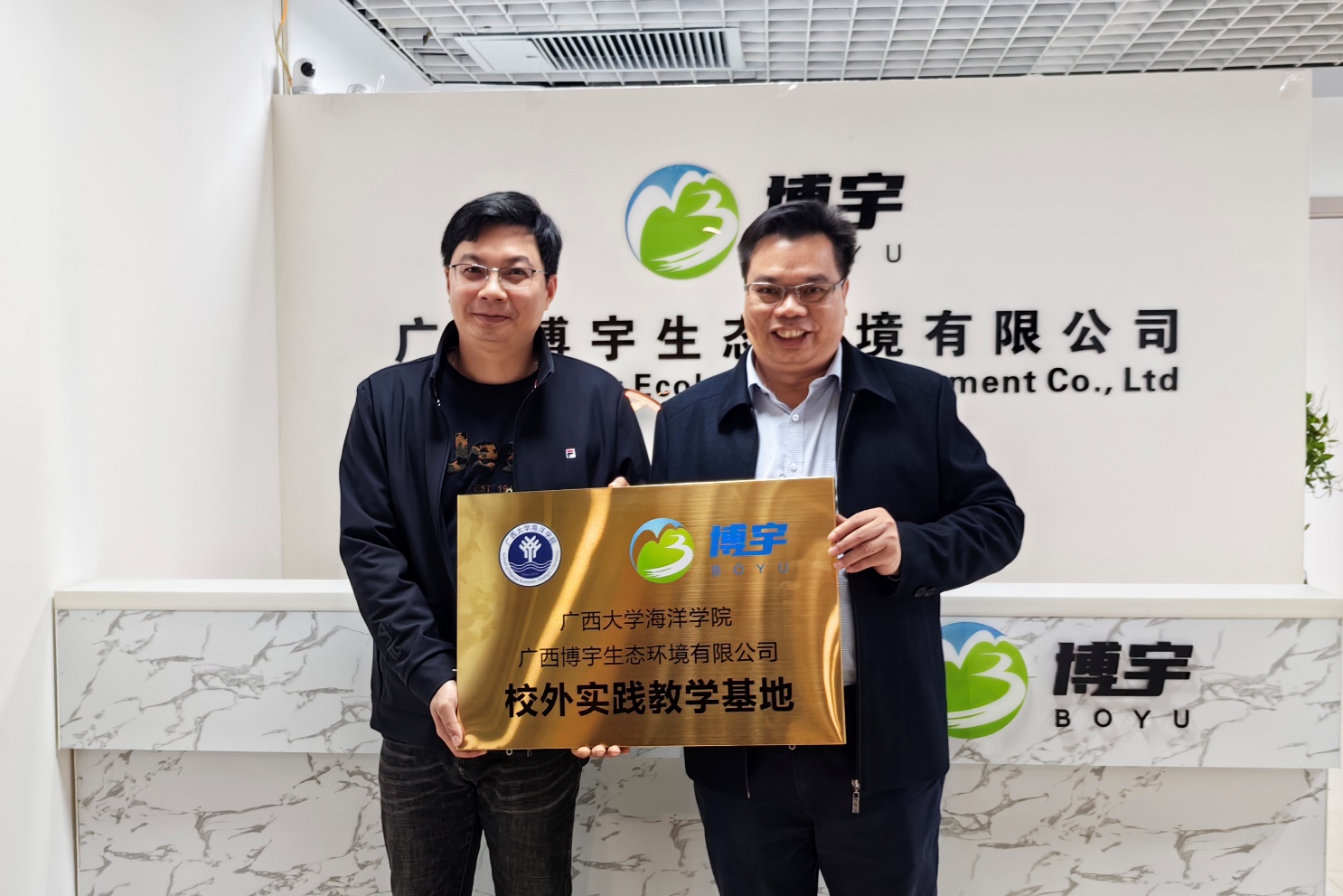 2023年3月28日,LETOU国际米兰官网与广西博宇生态环境有限公司举行大学生校外实践教育基地协议书签署暨授牌仪式。院党委副书记朱迅成与广西博宇生态环境有限公司副总经理文丰玉分别在建立大学生校外实践教育基地协议书上签字, 院党委书记谭运阳代表学院将“大学生校外实践教育基地”的牌匾授予广西博宇生态环境有限公司总经理邓杰。多位广西大学毕业的博宇高级技术合伙人等出席签约授牌仪式。