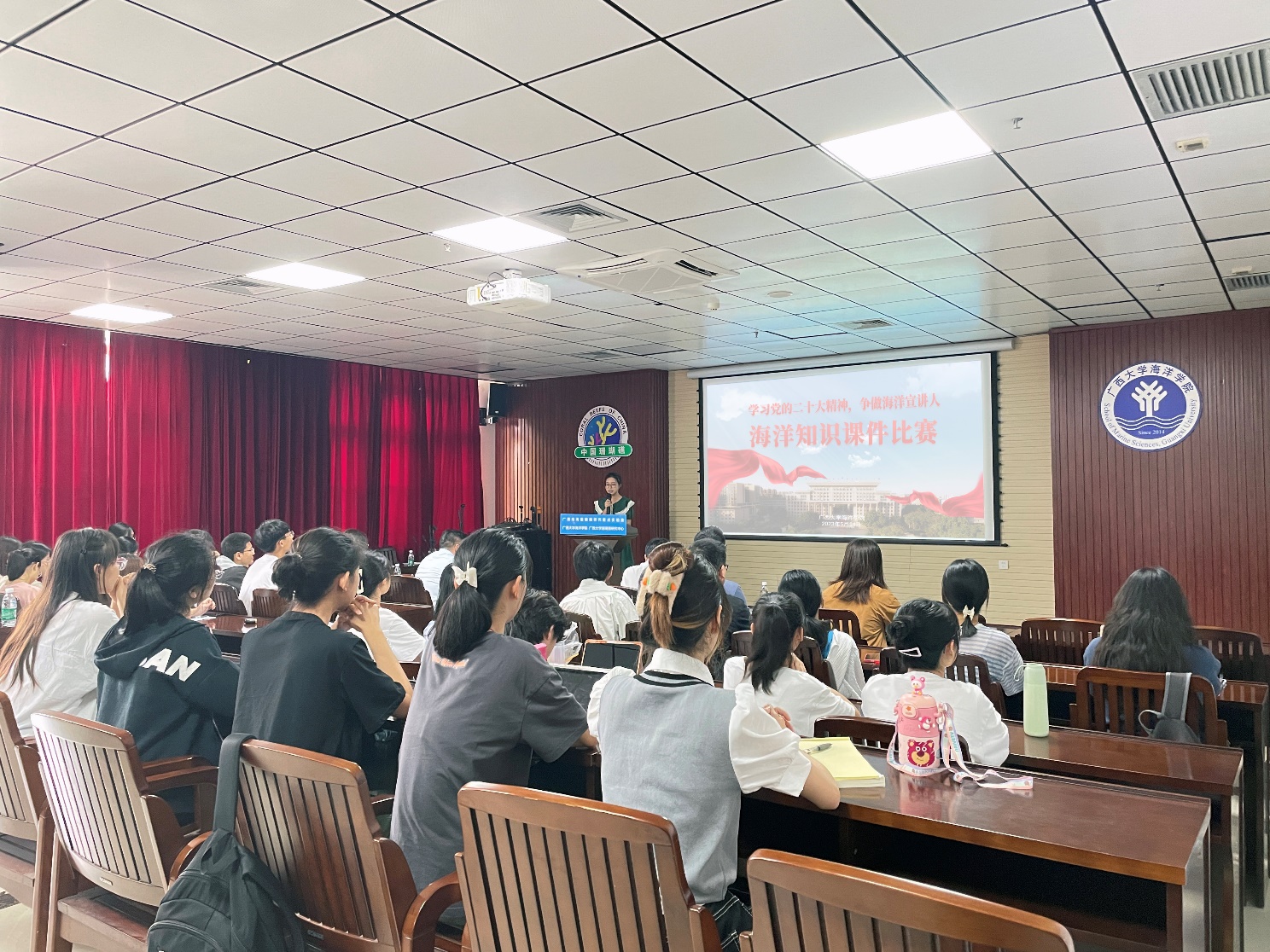 党的二十大报告明确指出,发展海洋经济,保护海洋生态环境,加快建设海洋强国。为贯彻落实党的二十大精神和习近平总书记关于海洋强国的重要论述,学院主题教育读书班成员于5月14日下午在学院综合楼215会议室参加由学院团委主办的“学习党的二十大精神,争做海洋宣讲人”海洋知识课件比赛,就探究如何高质量推进海洋科普工作进行调研,帮助学生提升海洋专业知识的科普宣讲能力。学院党委书记谭运阳、党委副书记朱迅成、党委委员姜伟和林玉华,以及19级研究生校友韦敏等出席比赛并担任评委。