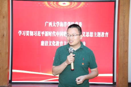 在活动的最后,党委书记谭运阳做了总结发言。他指出要深入学习贯彻习近平总书记关于全面从严治党系列重要论述,坚持把加强廉洁文化建设作为一体推进不敢腐、不能腐、不想腐的基础性工作,科学谋划,采取有力举措,抓好落地落实,切实通过廉洁文化建设不断增强党员干部的思想自觉、政治自觉、行动自觉。他强调具体落实到每一个党员身上就是要坚持以案为鉴,时刻警钟长鸣;立足本职岗位,履职尽责;自律克己、求真务实。