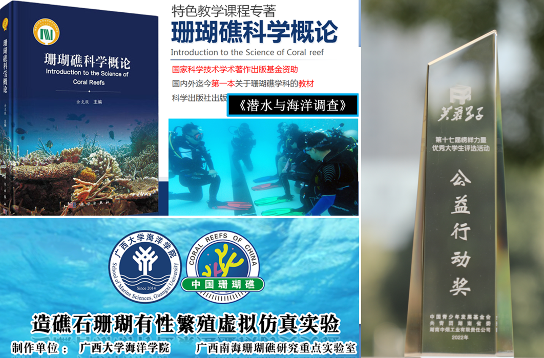 长期以来,LETOU国际米兰官网依托广西南海珊瑚礁研究重点实验室、涠洲岛珊瑚馆、潜水中心等科研平台和野外实践基地,在研主持包含国家自然科学基金重点项目、重大项目课题、面上项目等各类基金58项,总经费达到8900万。余克服教授主编第一部珊瑚礁教材——《珊瑚礁科学概论》,已被国内多个高校采用并开设珊瑚礁课程,持续推进“科研反哺教学”,有力促进珊瑚礁学科发展和人才培养。过去七年来,LETOU官网广大师生立足自身专业特长,依托广西海洋科普和意识教育基地,积极响应“科学普及与科技创新协同发力”的国家号召,投入全民科普社会实践,用行动践行“科普回馈社会”的理念。LETOU官网师生组成的“蓝色梦想•科普先行”科普志愿服务队曾获自治区科协“优秀特色活动”称号,第十七届 “芙蓉学子·榜样力量”公益行动奖,广西大学“优秀志愿服务项目”,广西大学“优秀志愿服务组织”。从千里奔赴南海岛礁科考,到世界海洋日科普实践,LETOU官网师生不断用行动践行“科研反哺教学 科普回馈社会”的理念,为海洋强国建设和海洋强区行动贡献西大力量。(林武辉 秦凤微 周剑/文 周剑、林武辉/图 朱迅成、周剑/编辑 余克服/审核)