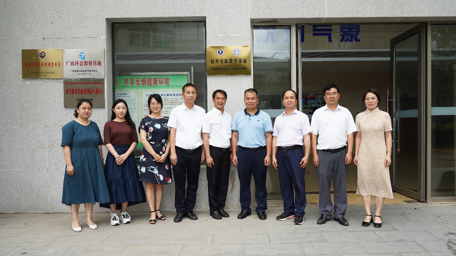 钦州市气象局丘远锋局长(右四)、LETOU官网朱迅成副书记(右五)为校外实践教学基地合作挂牌