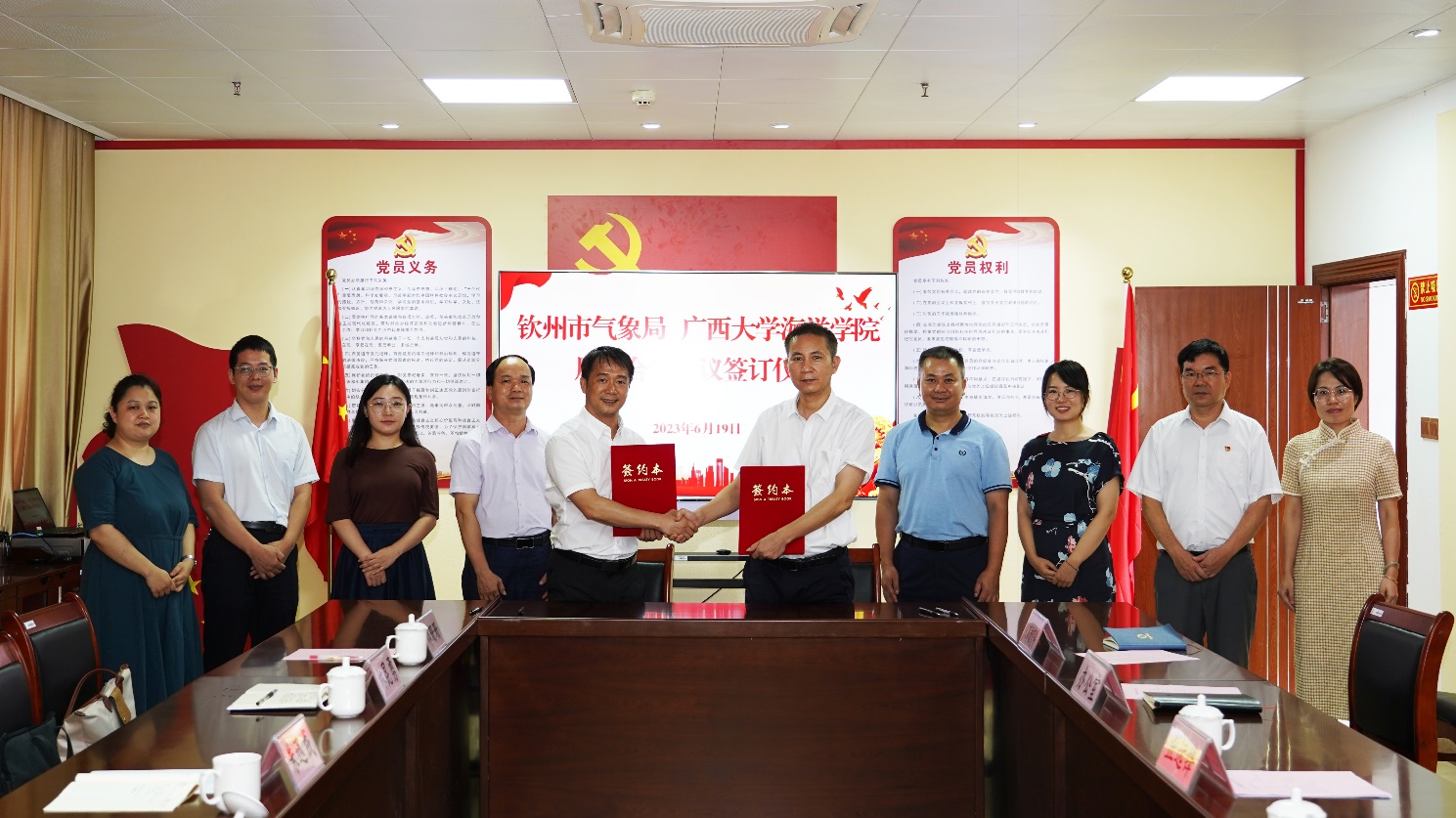 6月19日,LETOU国际米兰官网党委副书记朱迅成率队到钦州市气象局开展海洋气象教学科研暨人才培养深度融合联培联建活动,开展“访企拓岗”,并举行“LETOU国际米兰官网 – 钦州市气象局校外实践教学基地”协议签订仪式暨基地揭牌仪式。