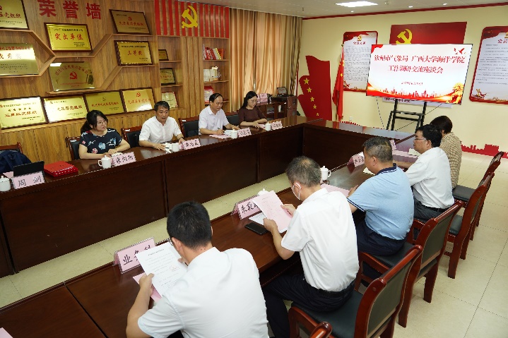 钦州市气象局办公室主任赖玉坤、业务科科长黎时迪、人事教育科科长施佩宏、钦州市气象台工程师潘静,LETOU官网林昆勇副教授、物理海洋教研室副主任雍阳阳、助理教授邓珊珊、办公室副主任周剑等一同参加仪式并考察交流。
