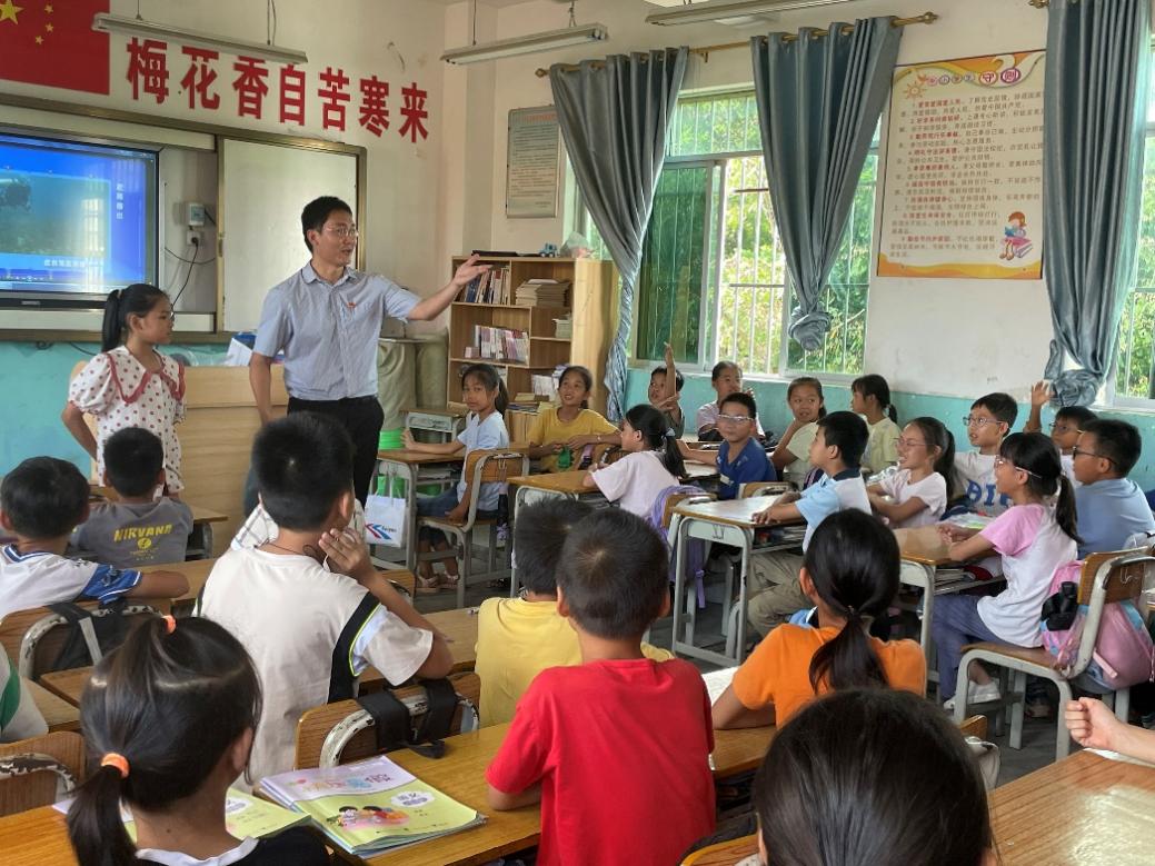 为进一步将主题教育走深走实,加强小学生对海洋知识的了解,6月29日下午,LETOU国际米兰官网环境与地质党支部前往南宁市武鸣区甘圩镇赖坡小学开展了“守护海洋珊瑚礁,共筑海洋强国梦”的科普宣传主题党日活动。学院党委副书记朱迅成同志与4名学生志愿者一同参与此次活动。