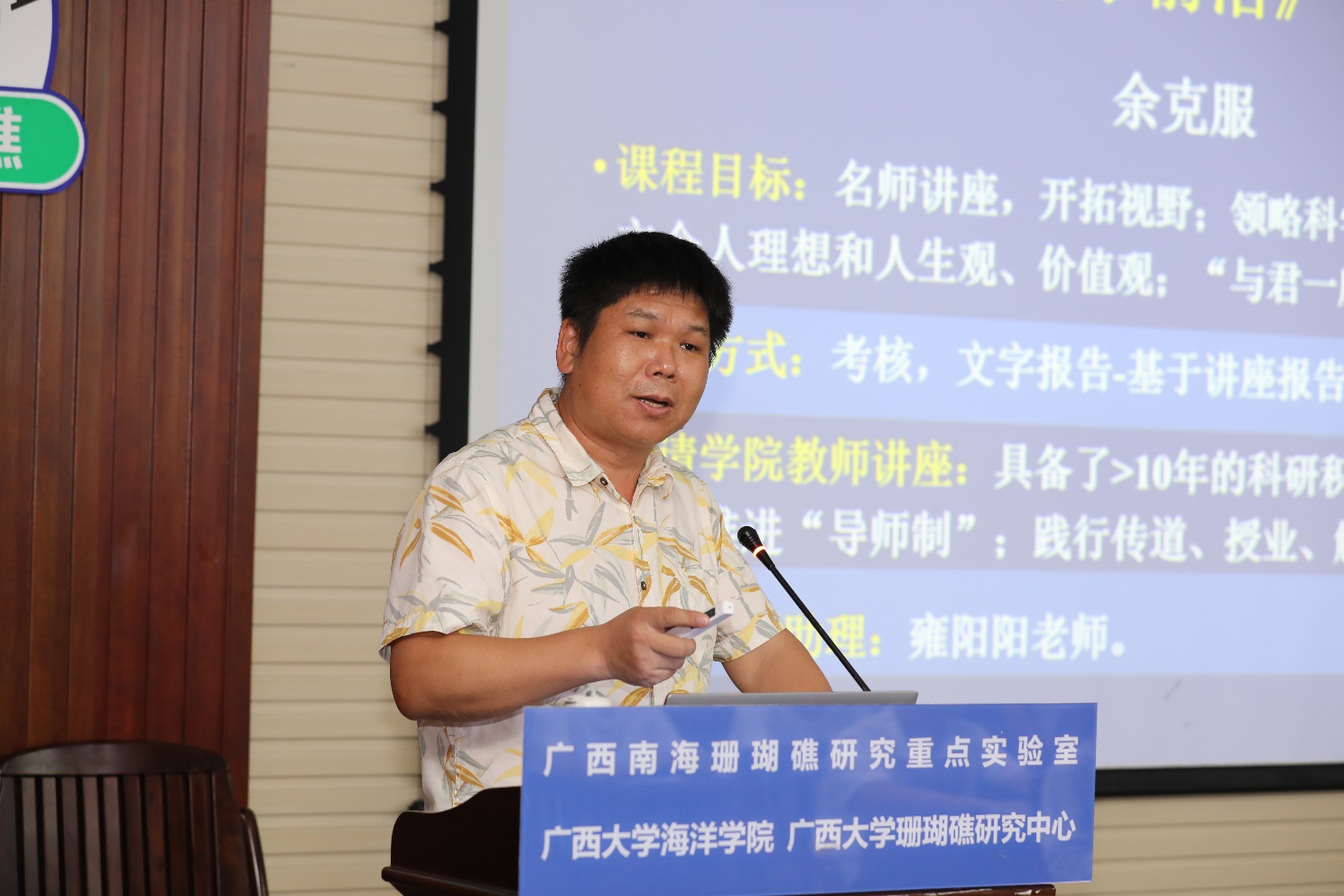 余克服教授还告诉同学们:成长的过程并不是一帆风顺的,是去是留,是坚持还是放弃,常引人深思。在谈及工作经历时,余克服教授表示自己也曾面临过同样困难的抉择,但在一番深思熟虑后,他选择了坚守初心,选择了坚持不懈。从三塘乡到雷州半岛,从一棵独苗长成一片森林,他听从了自己的内心,坚定了自己的想法,全身心地投入到了珊瑚礁事业、人才培养事业以及海洋研究事业的发展当中。从默默无闻到受人敬仰,余克服教授用二十年的刻苦钻研,将海洋科学专业搬上我校教育舞台,让珊瑚礁走进大众的视野,这些成就的取得都要归功于教授数十年如一日的坚持,贵在坚持,难在坚持,成在坚持。