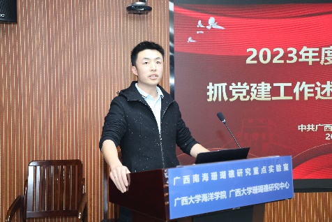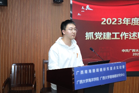 在听取了各支部的述职后,秦华东对各支部书记的述职逐一进行了点评。他充分肯定了这次党支部书记抓党建述职评议工作会议准备充分、检视深刻、意见中肯,达到了预期的效果。结合学校新时代党建工作中对基层党支部的建设要求,他对学院及各支部下一阶段的党建工作提出三点建议:一是以习近平新时代中国特色社会主义思想为指导,加强政治理论学习,持续学习贯彻党的二十大精神,在支部中形成良好的学习氛围,在此过程中敢思敢想、创建特色党建品牌;二是按照“围绕中心抓党建、抓好党建促发展”的工作思路,充分发挥党建引领作用,以“党建+学习”“党建+科考”“党建+科研”“党建+服务”等载体建设成为党建和业务工作共同推进的多种平台,党建与业务双融双促,充分发挥党员的个人能力,促党员更快速成长,推动基层党建提质增效;三是强化党支部抓党建工作责任意识,对标对表落实各项工作,缩小与上级党组织要求的差距,围绕学校和学院的中心工作不断创优争先。