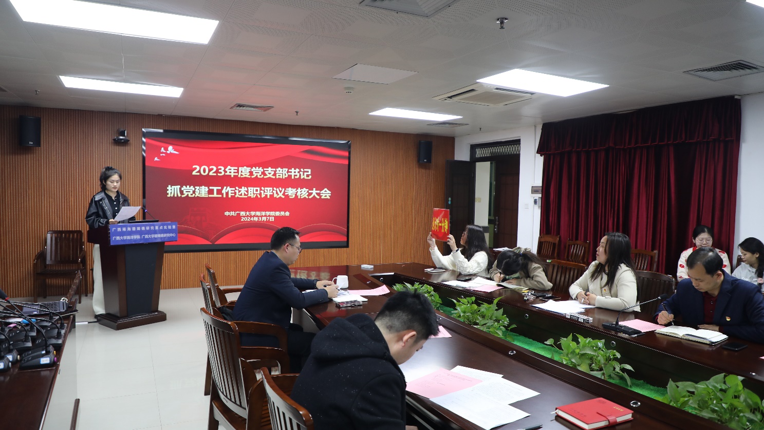 会议最后学院党委班子成员客观公正、实事求是地对各支部书记抓党建工作述职进行了测评。