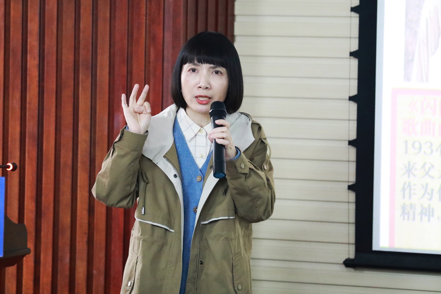讲座伊始,覃思深入介绍了红色歌谣的精神内涵、产生的历史背景以及风格特点。红色歌谣以激越旋律与集体创作特质,构建了跨越时空的情感传递系统。作为中国革命记忆的声学编码,红色歌谣既承载着特定时代的政治叙事,又在群众传唱中完成艺术转化,使抽象的革命理念转化为可感知、可传播的声波符号,最终成为人民集体情感共振的载体。