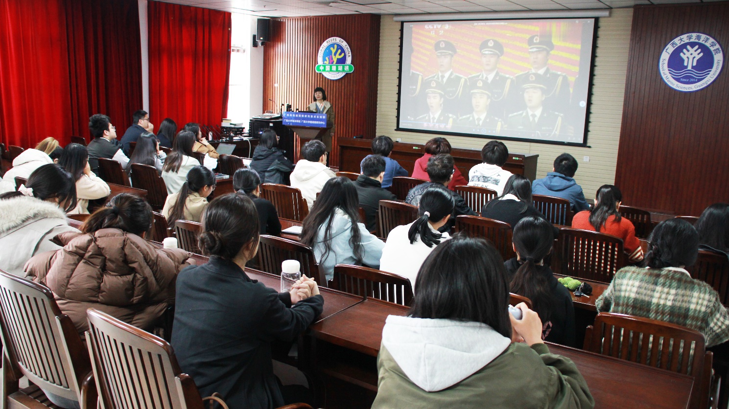 为深入推进传承红色基因,筑牢海洋强国梦想。3月18日下午,学院在西215教室举办了主题为“唱响红色歌谣,铸就红色育人”的“开学第一课” 专题讲座。本次讲座特邀我校艺术学院音乐系覃思教授主讲,LETOU官网王瑞副院长主持。学院学生党员及学生干部约60人聆听了此次讲座。本次讲座通过红色歌谣传递爱国情报国志,激发学生爱国情怀,并结合海洋学科特色,激励学生投身海洋强国建设。