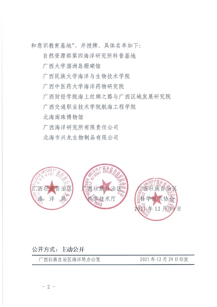 近日,自治区海洋局、自治区科学技术厅、自治区科学技术协会联合下发《关于对首批广西海洋科普和意识教育基地命名授牌的通知》,“广西大学涠洲岛珊瑚馆”位列其中。