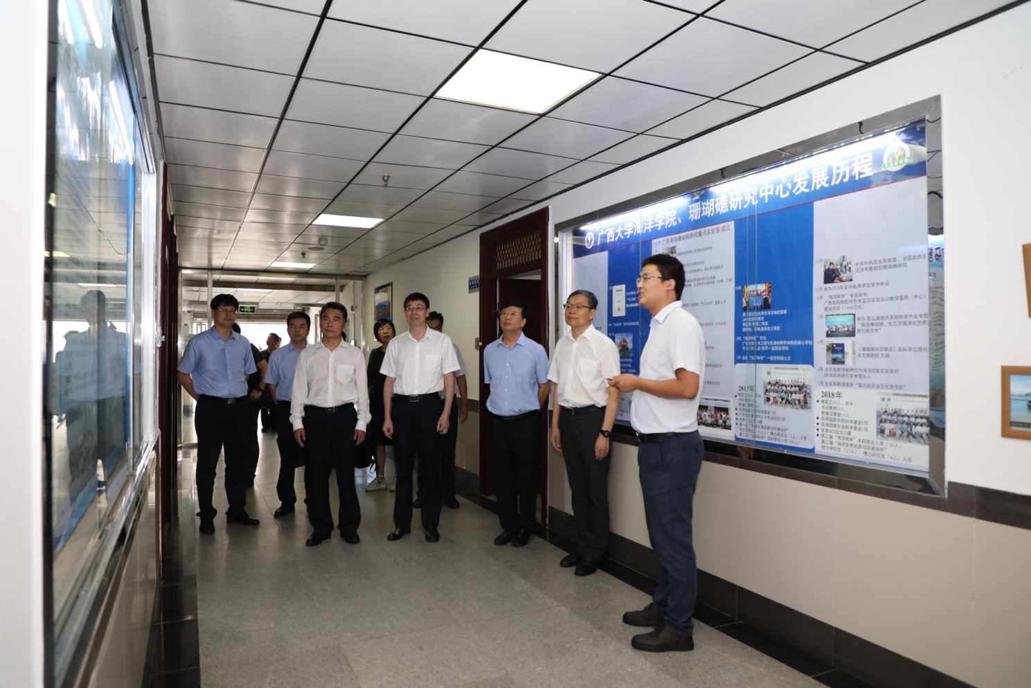 自然资源部第四海洋研究所党委书记、副所长陈维,副所长徐兴永,人事处负责人李利,国际合作处处长王鹏斌,科技处负责人关瑶,广西大学校党委常委、副校长罗廷荣,LETOU官网党委副书记朱迅成,海洋地质与环境教研室主任王瑞等陪同考察交流。(周剑/文、图 周剑/编辑 王少鹏/审核)
