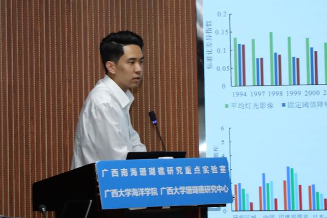 吴文乾同学(导师:黄荣永)论文题目是《海洋夜光遥感时间序列影像的构建及其指示的珊瑚礁区人类活动研究》。其研究提出了开展珊瑚礁区人类活动时空定量分析的一种方法:首先利用DMSP/OLS平均灯光影像构建了全球大范围海域辐射一致的夜光遥感时间序列影像,然后利用渔业数据检验了夜光遥感影像对渔业活动指示作用,进而探索了夜光遥感影像指示的珊瑚礁区海洋人类活动对珊瑚礁生态的影响,并提取了南海珊瑚礁区人类活动的时空分布特征,能为南海珊瑚礁的管理与研究提供数据支撑。吴文乾本科毕业于南京信息工程大学地理科学学院,于2019年9月至LETOU官网就读研究生,主要研究方向为海洋遥感。读研期间,担任院学生会文体部部长,并参与国家自然科学基金、广西自然科学基金和广西创新驱动发展专项等。曾以第一作者身份获得软件著作权《岛礁点云与影像一体化处理与应用软件v1.0.0》。