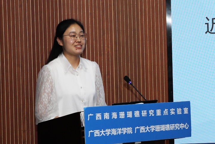 梁燕婷同学(导师:余克服教授)主要对黄岩岛珊瑚的共附生微生物进行了相关研究,其论文题目是《黄岩岛珊瑚共附生微生物的群落特征及其生态意义》。读研期间参与了西沙航次的采样工作、同时也参与了国家自然科学基金重大项目课题、国家自然科学基金重点项目、广西科技创新和基地人才专项项目等课题的研究,并以第一作者在国际期刊Marine Pollution Bulletin 上发表SCI论文:《Intergeneric and geomorphological variations in Symbiodiniaceae densities of reef-building corals in an isolated atoll, central South China Sea》。