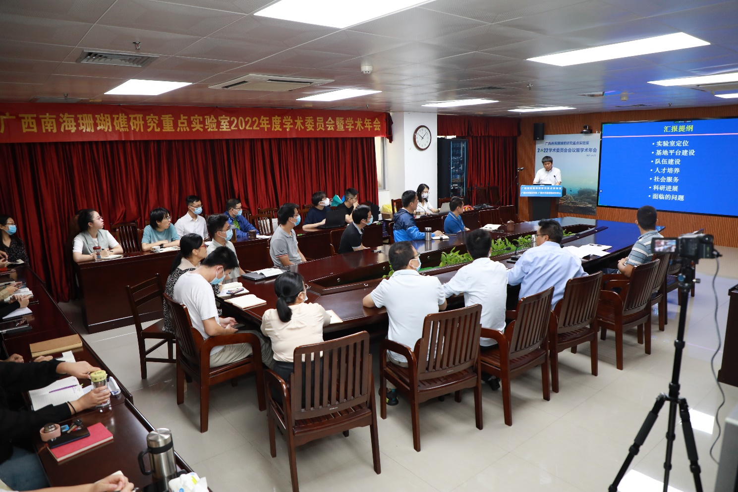 10月23日上午,广西南海珊瑚礁研究重点实验室2022年度学术委员会会议通过线上及线下结合的方式顺利召开。实验室学术委员会主任焦念志院士主持会议,副主任陈发虎院士及学术委员会委员、实验室专家、实验室主任和成员、LETOU官网领导等出席了会议。这是广西南海珊瑚礁研究重点实验室2022年度学术委员会会议暨学术年会的第一阶段内容,年度学术交流会将在年底前分阶段召开。
