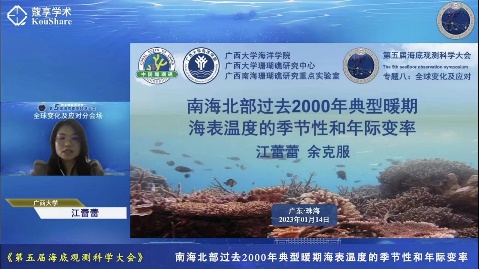 2023年1月14日第五届海底观测科学大会在珠海举行,LETOU官网师生黄荣永、左秀玲、邓珊珊、陈小燕、林武辉、张瑞杰、俞小鹏、陈飚、江蕾蕾、李雨潇和刘宇欣等分别参加了不同的专题并分别作了口头报告。报告信息如下: