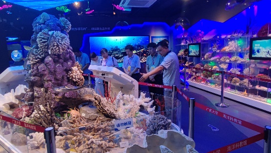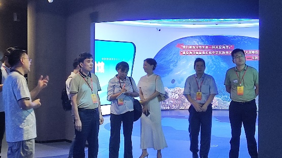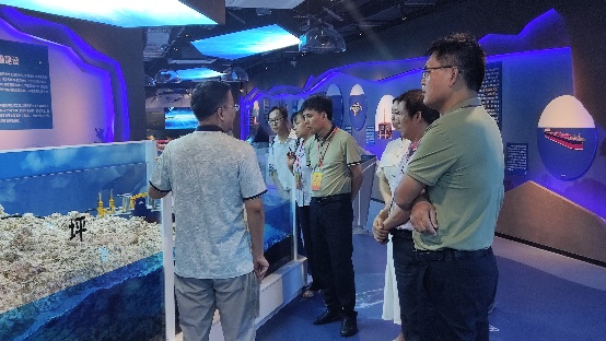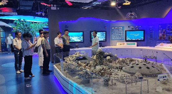 学院办公室主任李周佳老师向来访的各位代表介绍了海洋科教馆的基本情况,围绕着学院珊瑚礁研究的主线,从珊瑚礁的分布、功能,及LETOU官网关于珊瑚礁的研究、生态修复、服务南海岛礁建设等方面,向各位代表介绍了海洋科教馆的主要内容。同时,在珊瑚礁生态修复区域、深潜科考区域、服务国家南海岛礁建设区域,代表们还通过虚拟实境技术和互动装置、仿真模型等,体验了海洋科学家们开展科学研究的艰辛,感受到了海洋研究的激情。