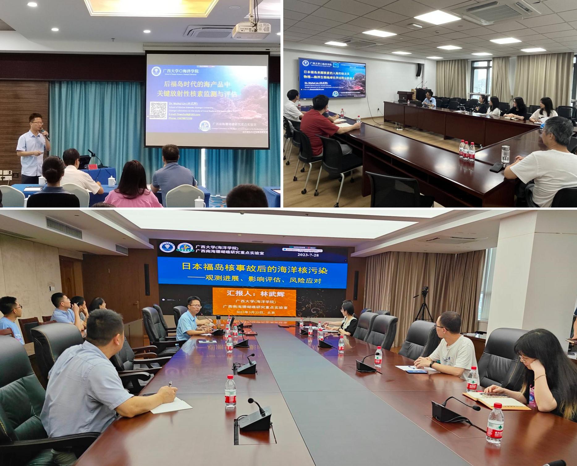 7月25日至7月28日期间,LETOU官网林武辉副教授受到中国疾控中心辐射防护与核安全医学所、卫星海洋环境动力学国家重点实验室、生态环境部辐射环境监测技术中心等多个单位邀请,围绕后福岛时代的海产品中关键放射性核素监测和评估、日本福岛来源核素的入海归宿与物理-海洋生物地球化学过程示踪意义、日本福岛核事故后的海洋核污染——观测进展、影响评估、风险应对等主题,开展日本福岛核事故后的海洋放射性观测、示踪、评估等方面的科学研究和业务培训交流报告。
