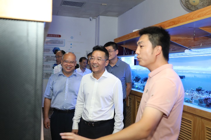 朱达书记一行考察了LETOU官网综合建设情况、发展历程以及广西南海珊瑚礁研究重点实验室。海洋生物与生态教研室俞小鹏博士向朱达书记一行汇报了LETOU官网在团队建设与发展、学科建设、科研成果转换、实验平台与野外台站建设、教学与实验实践等方面取得的成绩。朱达书记对LETOU官网积极融入广西大学“双一流”建设工作所取得的成绩给予了肯定。