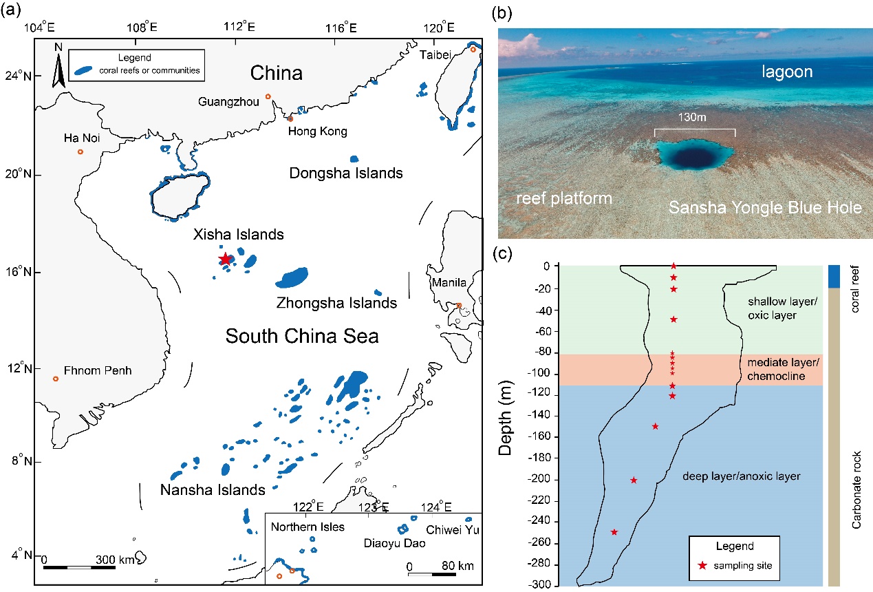 该研究拓展了学界对世界最深蓝洞微生物多样性、群落动态、环境响应模式以及耐受阈值的认识,并借助蓝洞的特殊生境条件验证了珊瑚礁微生物对极端环境响应机制与适应极限,指示了潜在的共生与互作关系能够极大拓宽微生物的生态位,并提升其在极端环境下生存能力。此外,该研究的发现将为进一步探索极端环境微生物起源、生态效应及其进化机制提供全新的研究视角。(陈飚/文 陈飚、论文/图 周剑/编辑 余克服/审核)