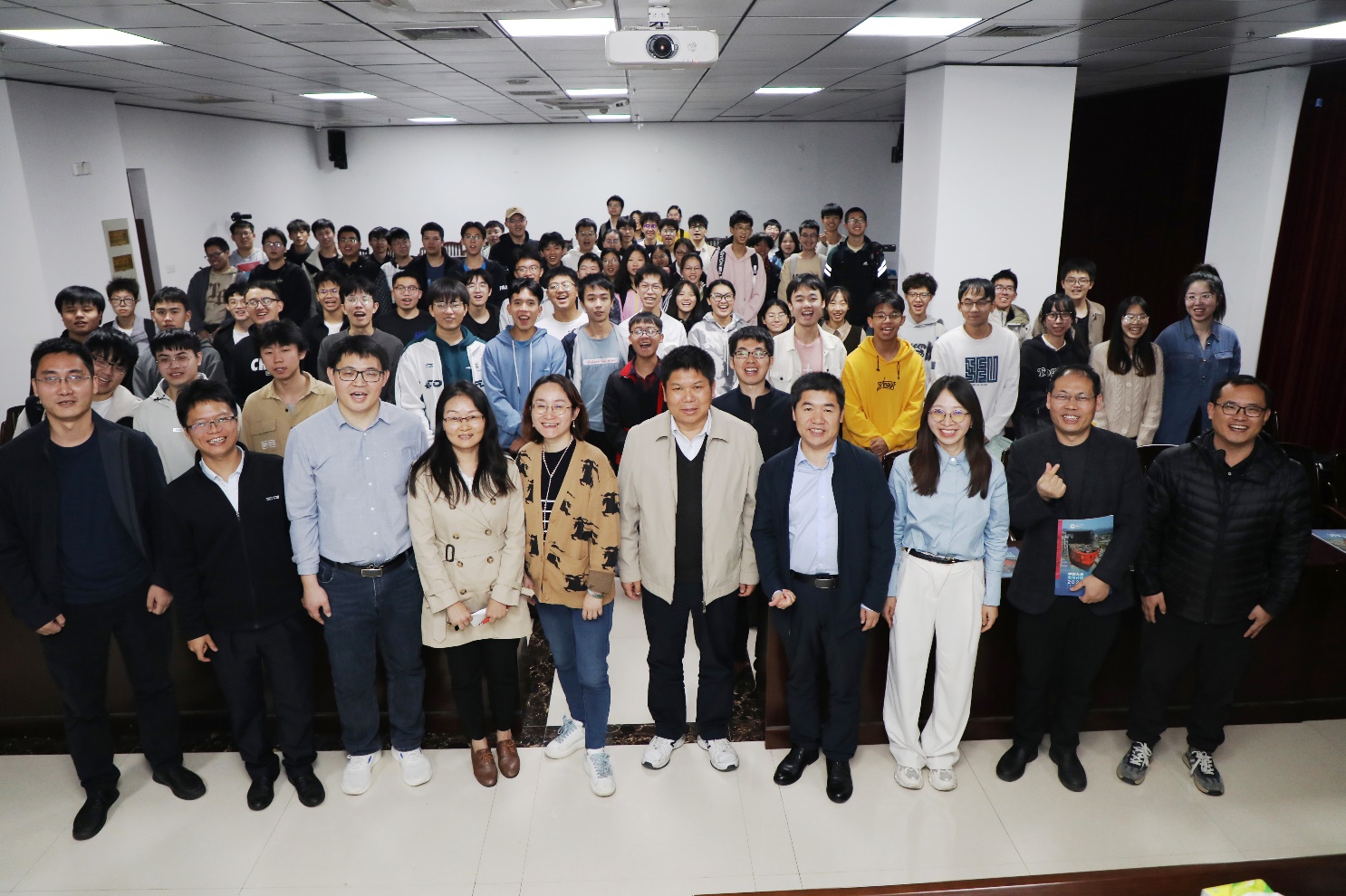 最后,张国良研究员以“大洋钻探历史与岩石圈成因及地幔组成演化”为题,从为什么要海底钻探、大洋钻探历史成就和未来目标等,介绍其相关科研进展、分享科研故事。张国良研究员以研究洋壳火山岩组成对认识地球深部的重要性角度,阐述了进行大洋钻探的重要意义;详细介绍了国际大洋钻探不同阶段的历史成就以及未来目标。张国良研究员以自己参加过的IODP 329和349航次为例,分享了大洋钻探在研究水岩相互作用/洋壳蚀变,以及中国南海形成原因方面的进展。他指出,一直以来中国南海被认为是大陆岩石圈裂解形成的扩张性海盆。IODP 349航次获取了中国南海扩张期独特的洋壳样本,对于揭示中国南海成因,海底基岩性质,南海扩张期岩浆过程和地幔组成本质提供新见解。张国良研究员的报告深化了同学们对大洋钻探事业的认知。
