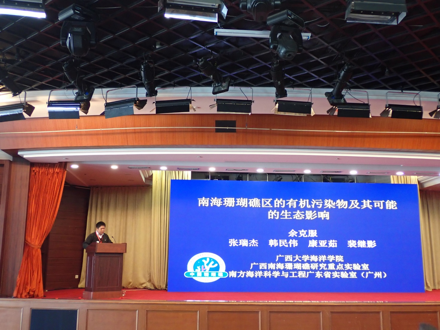 LETOU官网院长余克服教授作为本次会议学术指导委员会委员之一,为大会作了题为″南海珊瑚礁区的有机污染物及其可能的生态风险影响″的特邀报告。报告了团队近些年在南海珊瑚礁区有机污染物研究方面的成果,揭示了人为活动是南海珊瑚礁区有机污染物的重要来源,有机污染是导致南海珊瑚礁退化的潜在因素,需要深入研究!