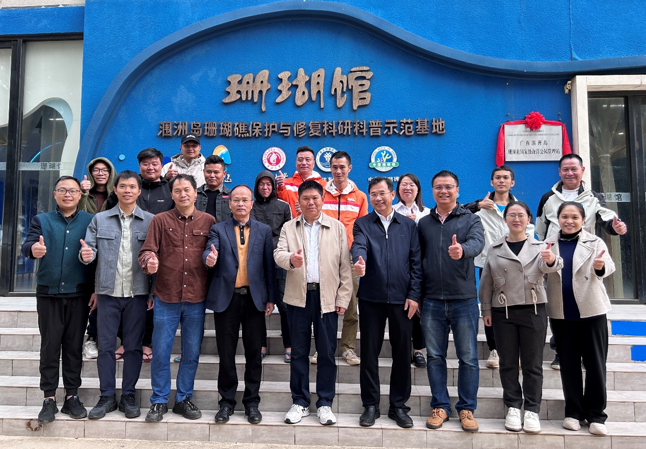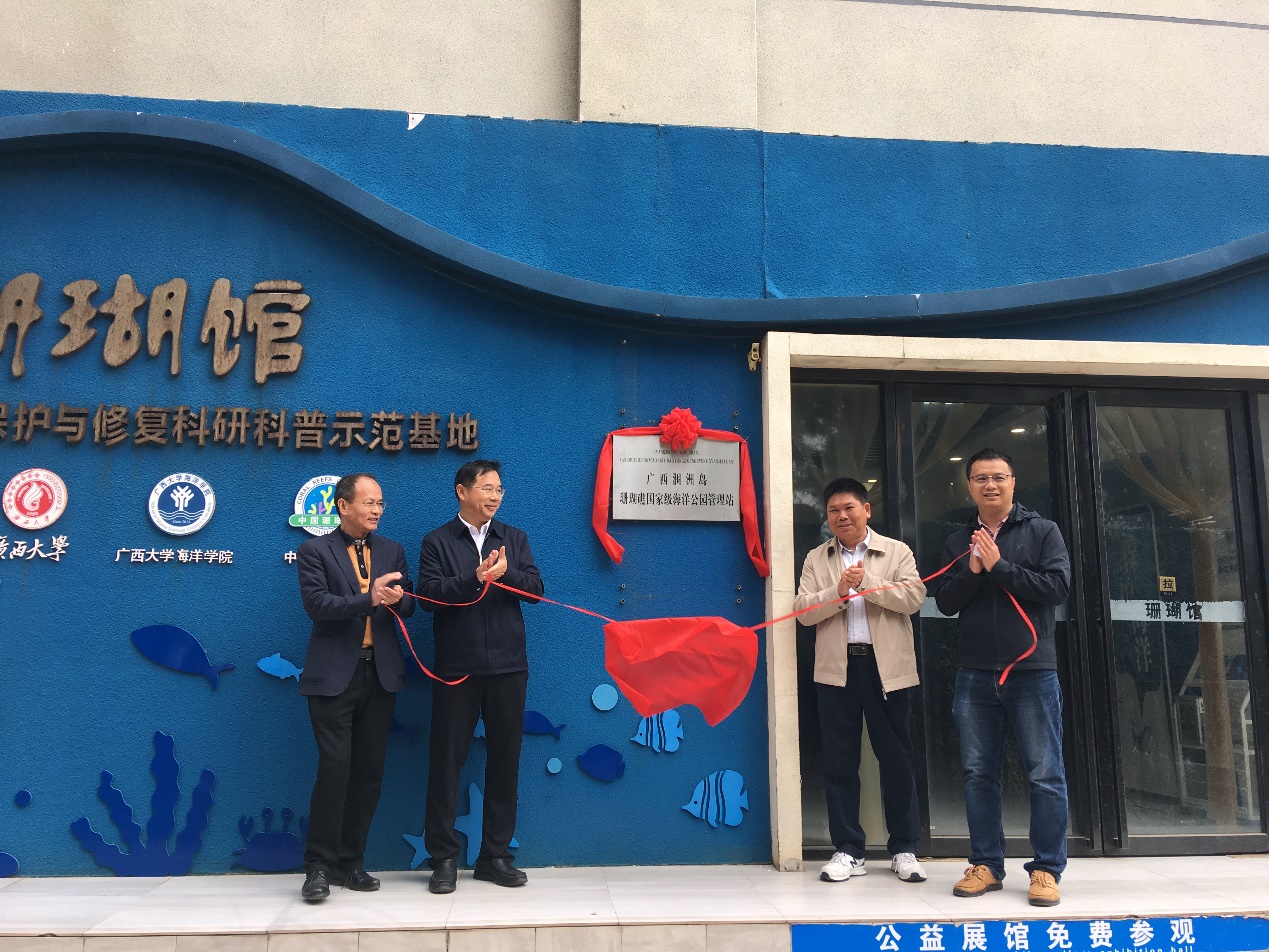 北海市海洋局海洋预警监测科杨嘉科长、广西涠洲岛珊瑚礁国家级海洋公园管理站站长周于娜、刘晓薇,涠洲岛旅游区管委会建设开发管理局局长罗继志,LETOU官网涠洲岛珊瑚馆馆长黄雯、常务副馆长黄爱国,LETOU官网潜水与海洋科考中心主任黄学勇等一同参加揭牌仪式。(黄爱国/文 李雨萧/图 周剑/编辑 余克服/审核)
