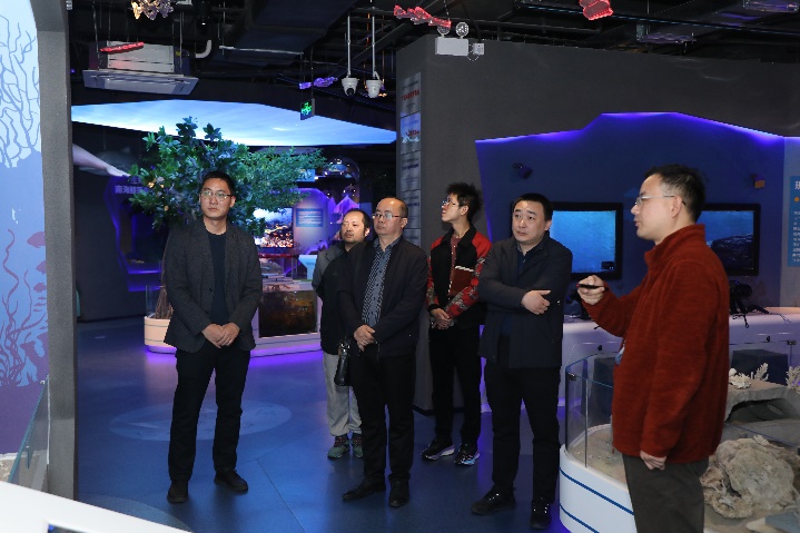 调研期间,马晓东馆长一行参观了广西大学海洋科教馆、岛礁生态修复实验室,深入了解了LETOU官网的平台建设、科研成果和科普教育工作。马晓东馆长对学院在珊瑚礁科学研究、科普教育教学和平台建设中取得成效给予了赞赏。