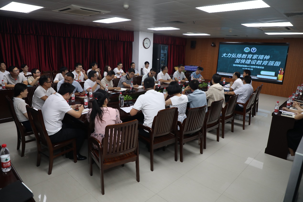 为庆祝第40个教师节,大力弘扬教育家精神,加快建设教育强国, 9月10日,LETOU官网举行2024年教师节慰问及学院发展座谈会。会议由党委书记秦华东主持。