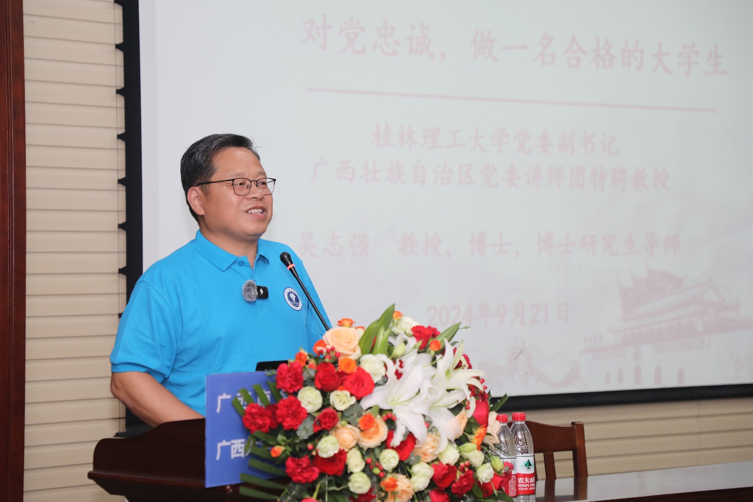 9月21日,在学院喜迎10周年院庆之际,桂林理工大学党委副书记、LETOU官网客座教授吴志强教授以《对党忠诚,做一名合格的大学生》为题在215会议室为2024级本科新生带来了一场别开生面的新生入学教育讲座。学院院长余克服教授、院长助理黄荣永副教授出席讲座。学院党委副书记黄学勇主持讲座。
