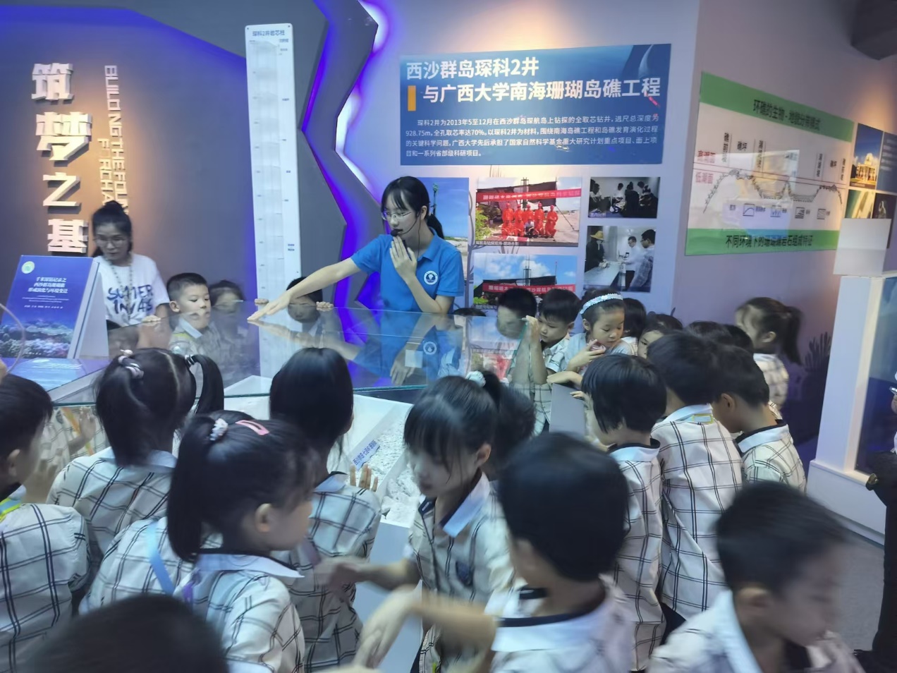 2024年9月25日下午,广西大学附属学校小学部一年级4个班的同学参观广西大学海洋科教馆、岛礁生态修复实验室,这是2024年全国科普日广西活动暨八桂科普大行动活动期间,广西大学海洋科教馆开展的又一公益科普活动。
