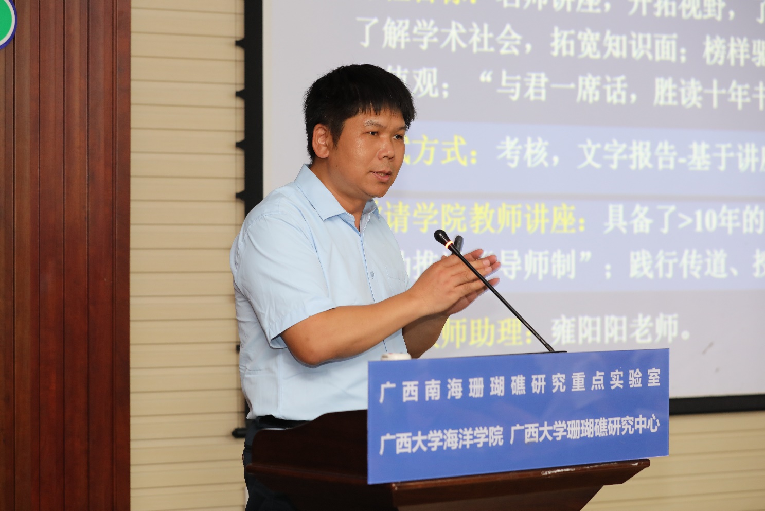 余克服教授还分享了自己的工作经历,他也曾面临过困难的抉择,但最终选择了坚守初心,坚持不懈。从雷州半岛三塘乡到整个南海,从一棵独苗到一片森林,他听从内心,坚定想法,全身心投入到珊瑚礁科学研究和人才培养的海洋事业之中。余克服教授凭借三十余年的不懈努力与刻苦钻研,成功将海洋科学专业引入广西大学的教育舞台,使之成为学校办学教育的一张亮丽名片。他的工作不仅让珊瑚礁研究成为广西大学的特长,还将其带入了公众的视野。这些成绩的取得,离不开他多年来始终如一的坚持和奉献。