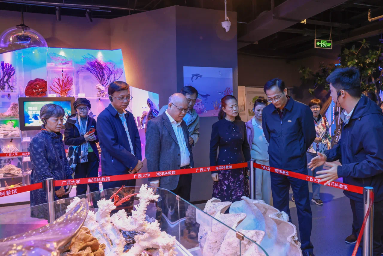 11月28日,中国科协2024年高层次人才国情考察活动(广西)暨“八桂之约院士专家冬令营”在南宁举行。当天上午,院士考察团在校党委常委、副校长梁恩维及自治区科协党组成员、副主席黎宁、李海欧陪同下,参观了我校海洋科教馆,深入了解广西大学海洋学科的发展历史及建设的举措、近年来在争创全面一流方面的情况。