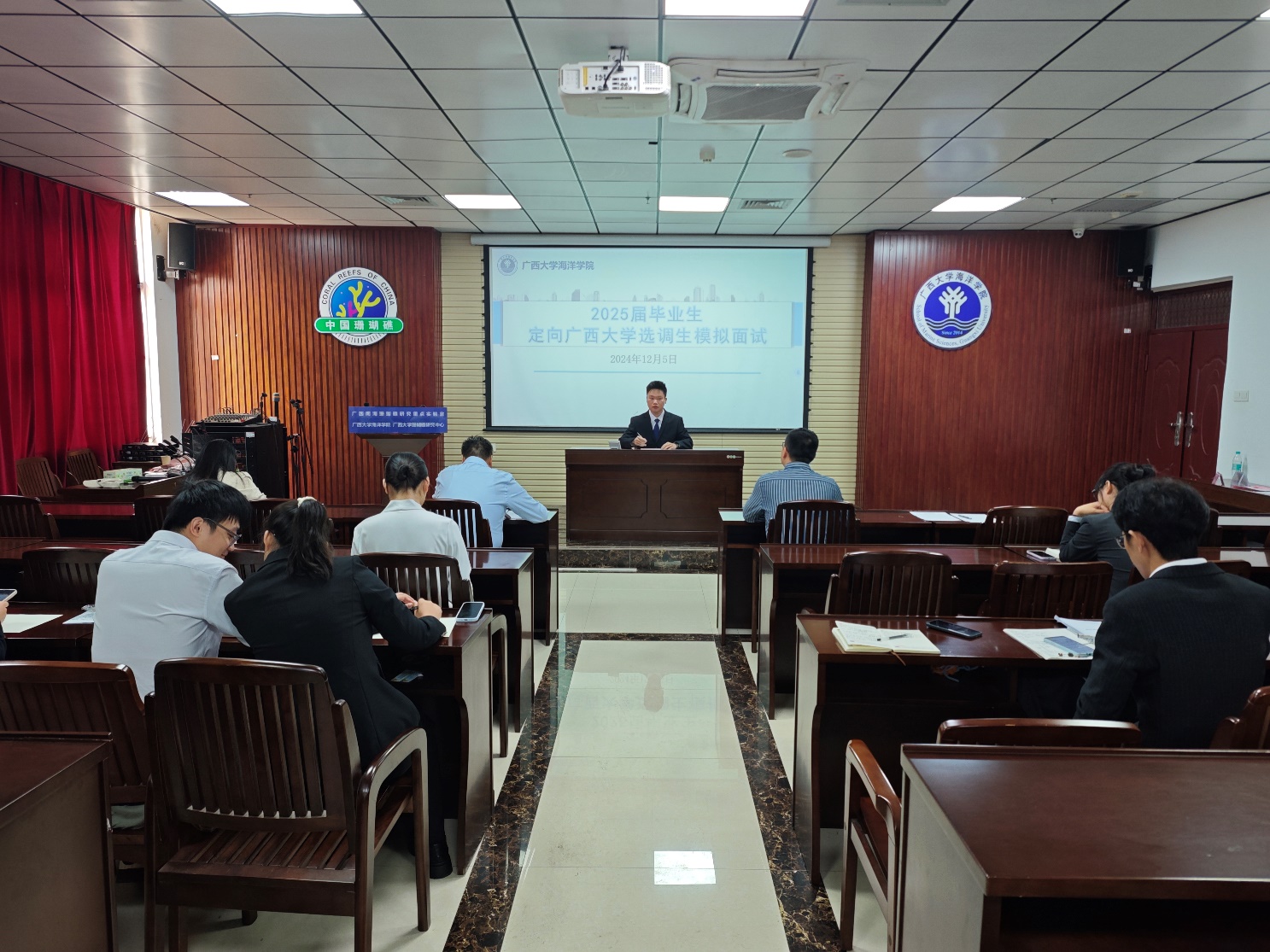 学院历来高度重视我校定向选调生选拔及应届毕业生就业工作,采取系列措施为应届毕业生就业提供各项支持;学院向各阶段学生广泛宣传、普及定向选调生相关内容和报考指南,每年定期举办就业专题讲座、模拟面试等,鼓励海洋学子积极投身国家基层建设,为广西发展和国家现代化发展进程贡献海洋学子的力量。