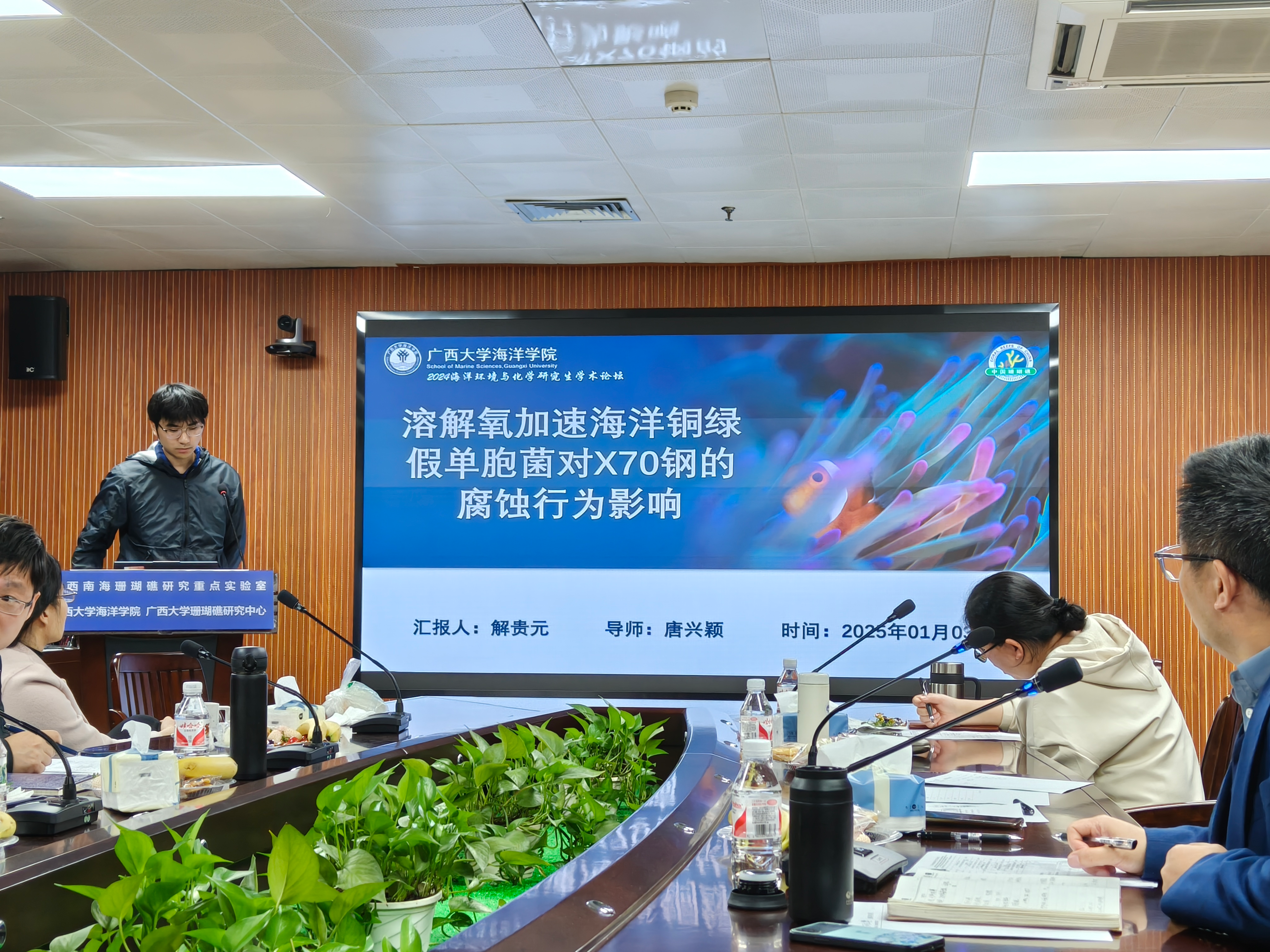 2025年1月3日上午,广西南海珊瑚礁研究重点实验室海洋环境与化学研究生学术论坛以线上和线下相结合的方式顺利召开。