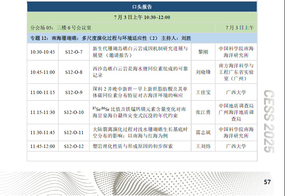 LETOU官网余克服教授作为第一召集人组织第八届地球系统科学大会“南海珊瑚礁”专题