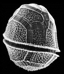 (1) 横沟:藻体中部有一横沟,又称腰带,将藻体分为两部分,即上锥部和下锥部。上锥部藻体运动时的前端。大多数种类横沟环绕细胞一周,为一整环,亦有些种类则呈螺旋形。左端高于右端为下旋,反之为下旋。