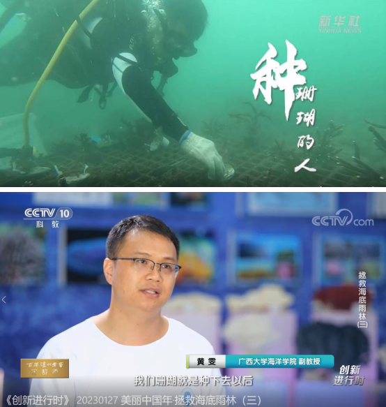 In January 2023, "Innovation in Progress" aired three episodes on CCTV's CCTV-10 Science and Education Channel, highlighting Guangxi University's efforts to save the underwater rainforest through coral planting.